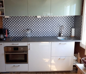 Keuken: koelkast met klein vriesvak; combi oven-magnetron; 2-pitsfornuis met 2 inductie kookzones, afzuigkap; koffiezetapparaat (10-koppen) voor filterkoffie; waterkoker. In Frankrijk wordt het water niet direct uit de kraan gedronken. Men dient hiervoor flessen water te kopen.