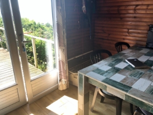 Kenmerken: houten chalet; parkeren 1 auto bij het huisje; slaapzolder voor 3 personen; begane grond 2 persoons slaapbank; half omheinde tuin met een heg ; groot terras met tafel en 6 stoelen; Wifi via de camping aanwezig. Geweldig uitzicht op zee. Het huisje is ingericht voor 3 tot 5 personen. Vanwege niveauverschillen in en om het huisje is het minder geschikt voor kinderen jonger dan 4 jaar en mensen die moeilijk ter been zijn.